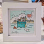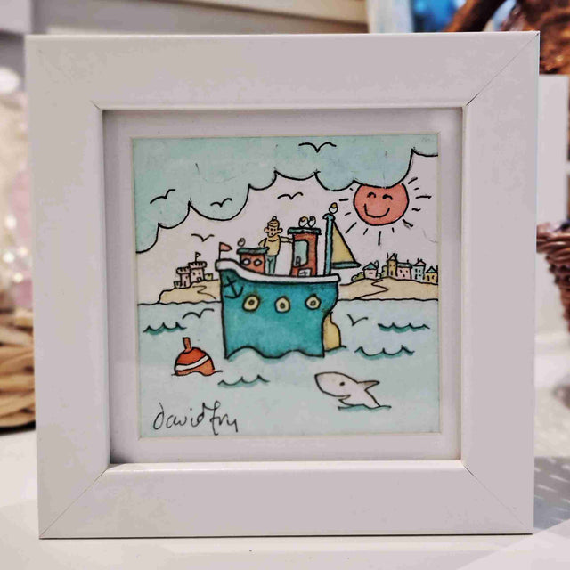 Original pen and watercolour painting by David Fry presented in a little white frame.