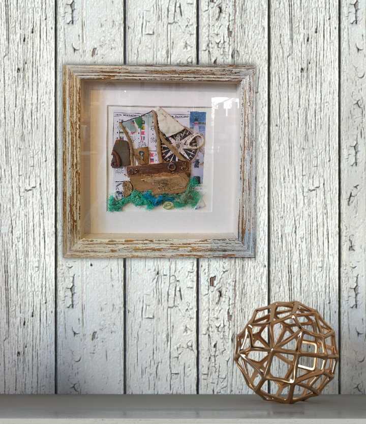 "Signalling" by Paul Clark. This is a collage made using driftwood, flotsom & jetsom.