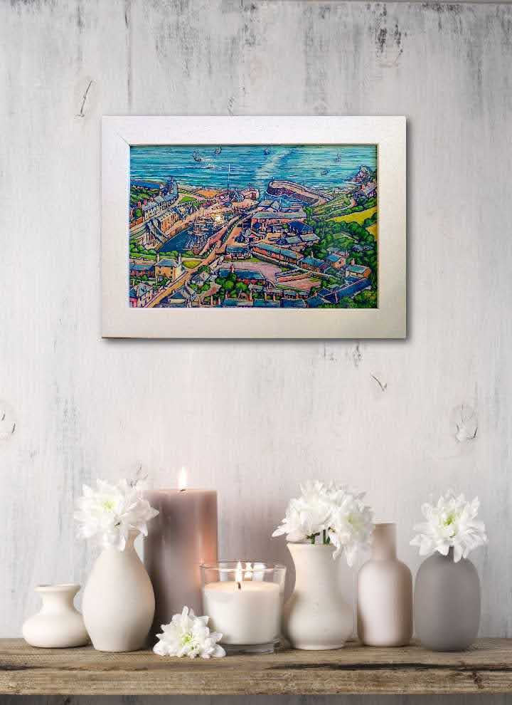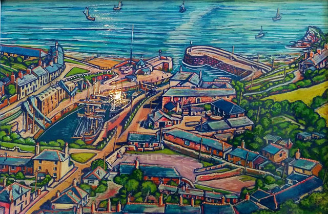 "Birds Eye View Charlestown" is an original painting by Alan Arthurs of the historic port of Charlestown which is a UNESCO World Heritage Site.