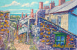 "Down the Back Quay Road Cottages, Charlestown" is an original painting by Alan Arthurs of the back gardens of Quay Road Cottages in Charlestown.