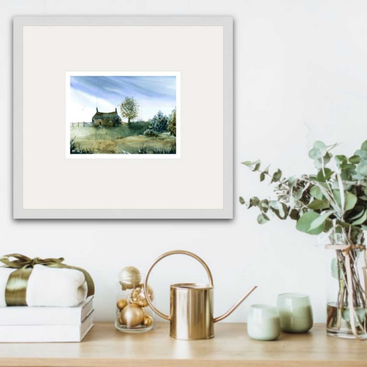 "Eventide" print by Alison Jones. Available either mounted ready for framing, or framed in a white wood frame with mount and glass. Please choose in the options.