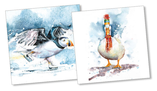 Puffin & Duck Christmas card pack of 10 by Rachel Toll