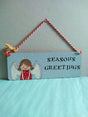 Hand painted wooden "Seasons Greetings" sign by Annabel Dann.
