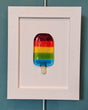 Fused glass "Rainbow Lolly" in a frame by Niko Brown.