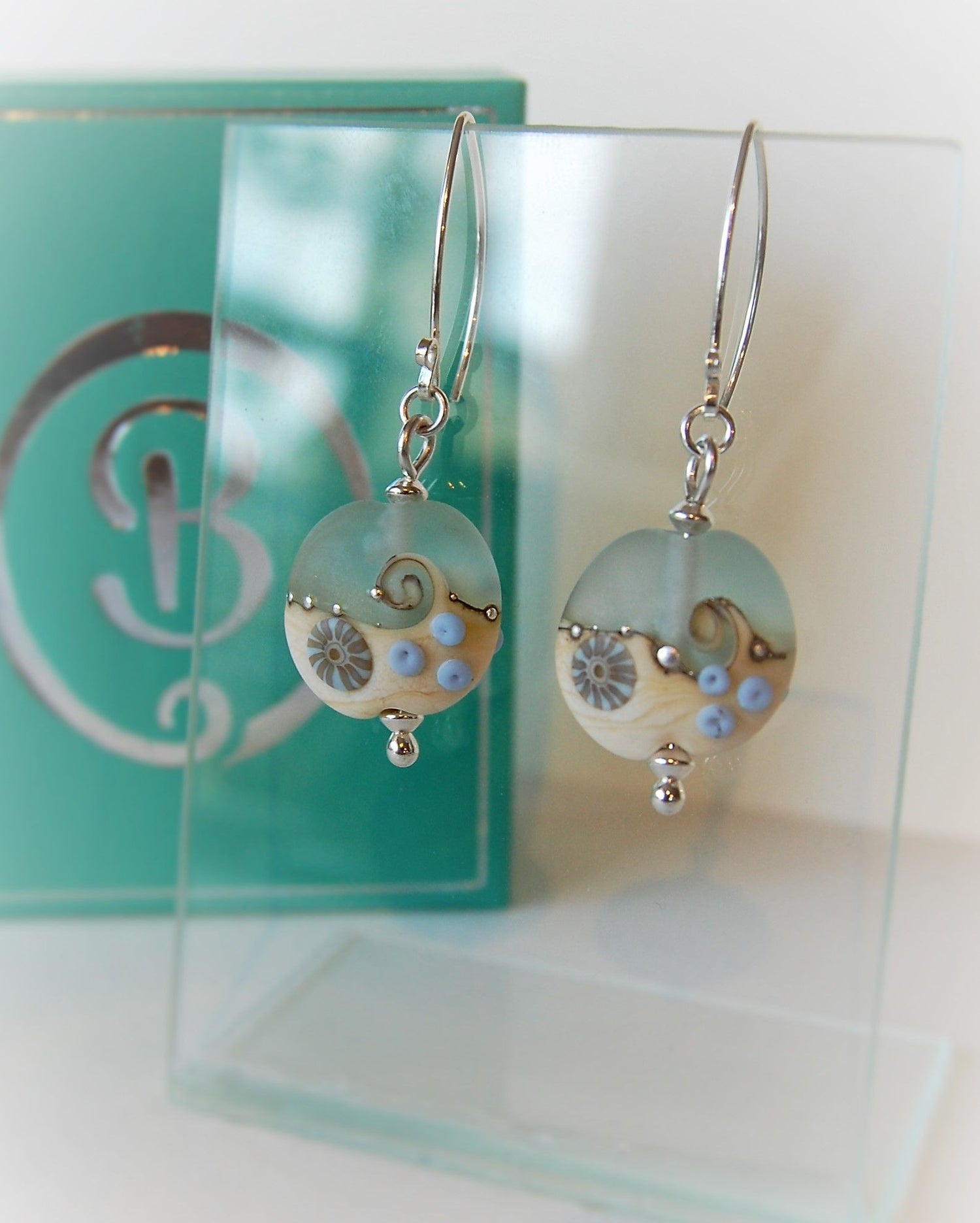 Handmade by Julie Fountain using the lampwork technique, these gorgeous glass earrings come with sterling silver ear wires. As each is hand made the design will vary slightly with each pair.