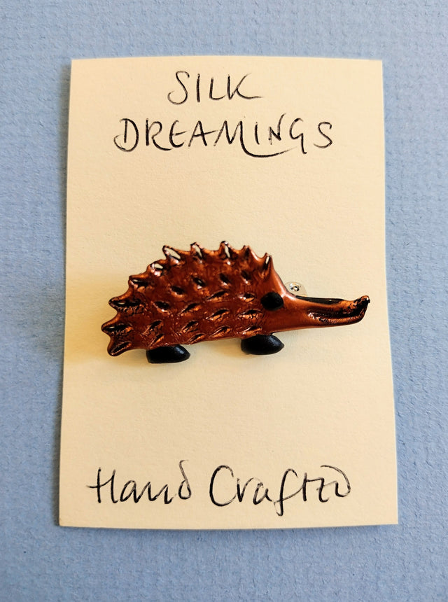 Silk Dreamings hedgehog brooch is backordered and will ship as soon as it is back in stock.
