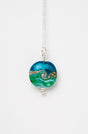 Handmade by Julie Fountain using the lampwork technique, this beautiful pendant is part of the new Beach Babe range with a lentil shaped bead on a 16″ sterling silver trace chain, finished with a branded and hallmarked tag. Each bead is decorated on both sides.The tiny dots are 99% fine silver melted into the glass bead.