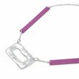 Handmade chunky pewter ring necklace with lamb skin leather feature in grape on a stainless steel chain.