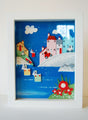 "Me Ander" is a lovely little collage by Cornish based artist David Fry who cuts each piece of wood and board and then paints them in bright colours.The collage is presented in a white box frame ready to hang on the wall.