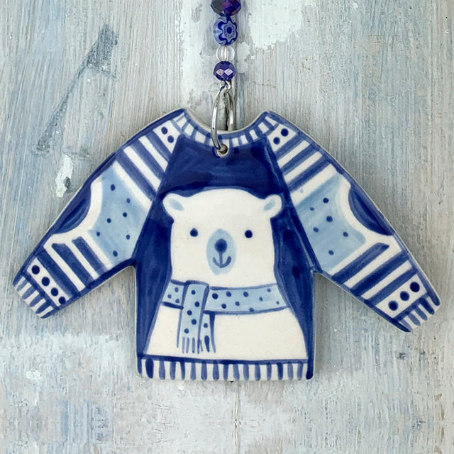 Blue Polar Bear Christmas Jumper ceramic decoration