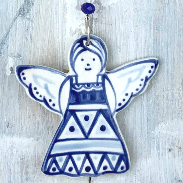 Blue Christmas Angel ceramic decoration