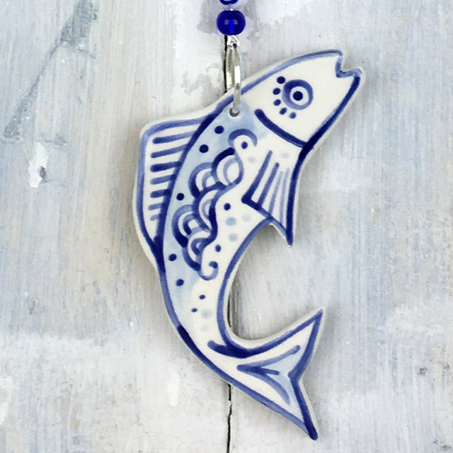 Handmade blue fish decoration is backordered and will ship as soon as it is back in stock.