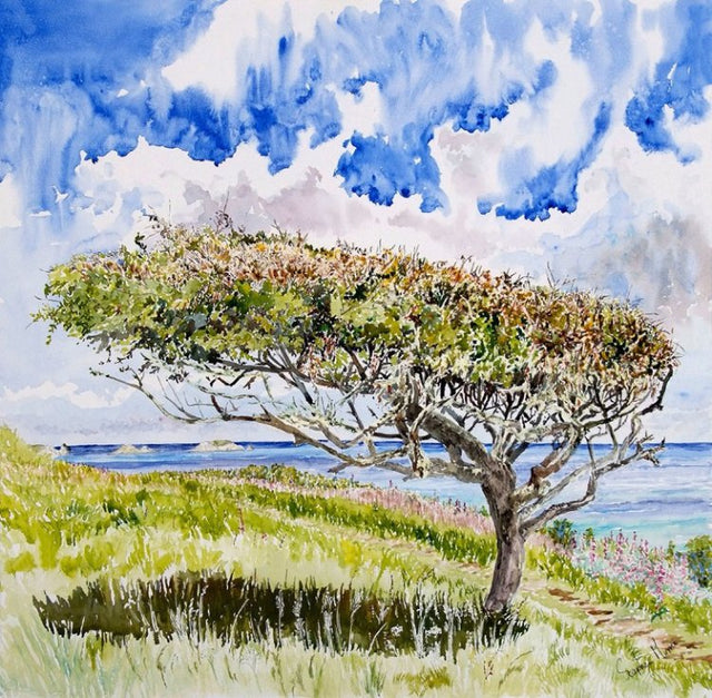 A beautiful print a May Tree on the Isles of Scilly, reproduced from an original watercolour painting by Stephen Morris.