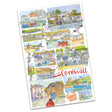 A lovely Cornwall tea towel designed by Emma Ball. This one has watercolour paintings of the following Cornish towns and villages. Polperro, Kingsand, Padstow, Polruan, Bude, Bodmin, Mevagissey, Port Isaac, Boscastle, Fowey, St. Mawes, Perranporth and Charlestown.