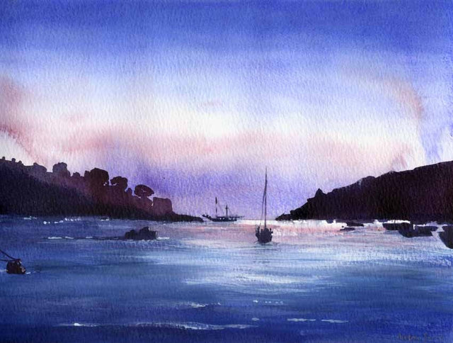"Sunset, Fowey" print by Alison Jones, comes mounted and cello-wrapped.