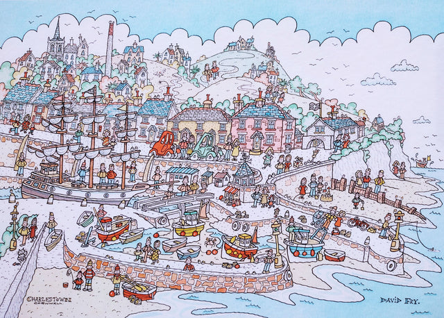 "Charlestown West” is a limited edition print reproduced from a pen and ink watercolour painting by Cornish based artist David Fry.