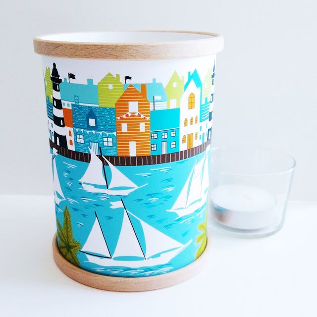 Places, nature, and the sea are current themes in my small but handmade range. This will change as I add more designs with new themes finding their way onto the side of a lamp. My aim is to produce lighting that also is a piece of art so that even when unlit they add interest, style, and colour to a room. The illustrations are either screen printed or digitally reproduced using the best quality art paper which gives each lamp a smooth smart and high-quality finish. The lanterns are made with translucent Japanese paper which lets through lots of lovely soft light with a candle inside.