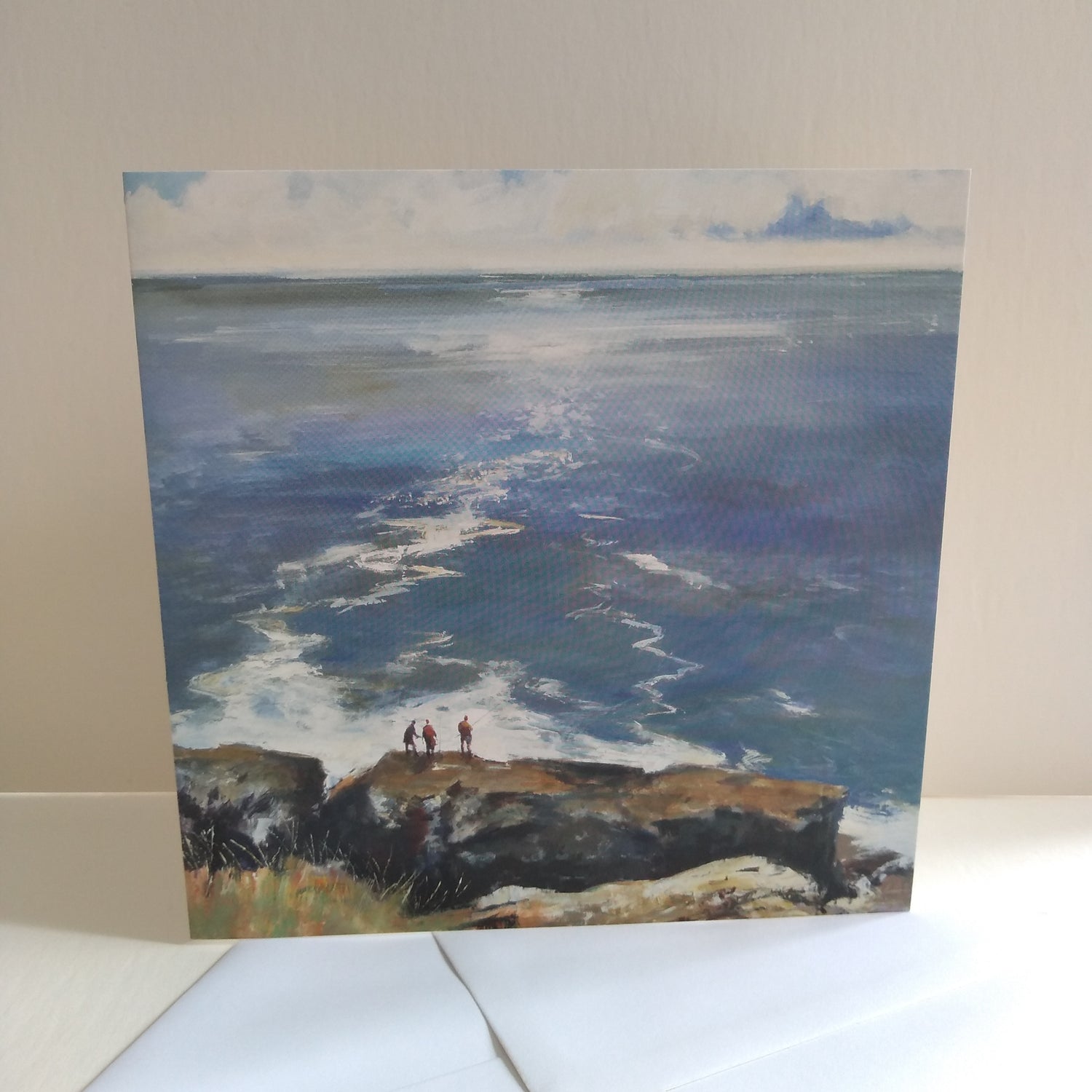 "Fishing From The Rocks" from the "Coastline Cornwall" range of art cards by Michael Sanders.