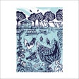 Joanna Martin's linocut designs have been inspired by nature and our wild coastlines. Sailing to remote islands off Ireland and Scotland has enabled her to observe wildlife close up, in all the elements. Through her art Joanna is able to share these joyful encounters. Working from her garden studio in County Down, Northern Ireland, she carves her designs out of oil linoleum, rolls them with ink and handprints them.