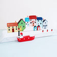 This one has a little red fishing boat moored alongside a harbour of colourful cottages.