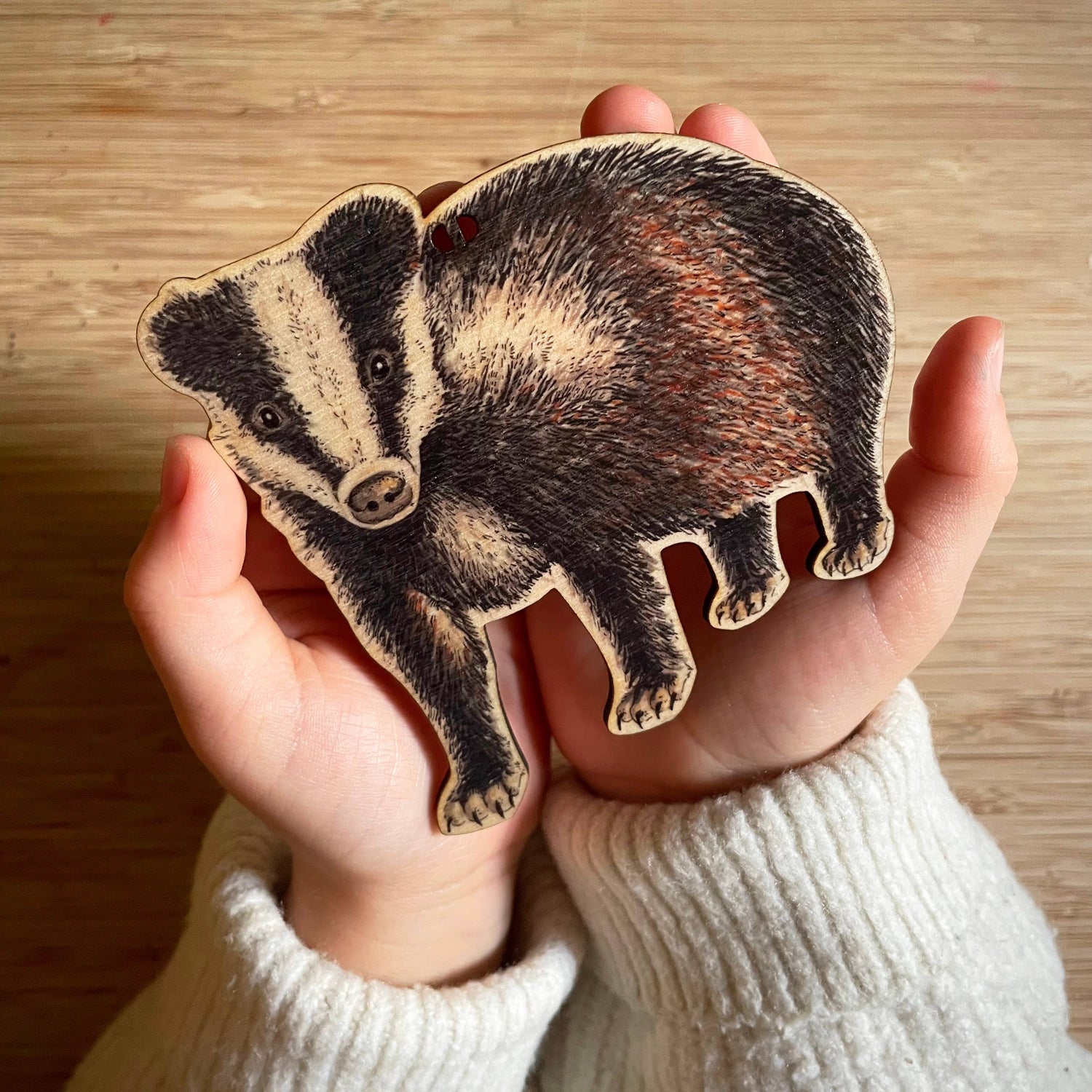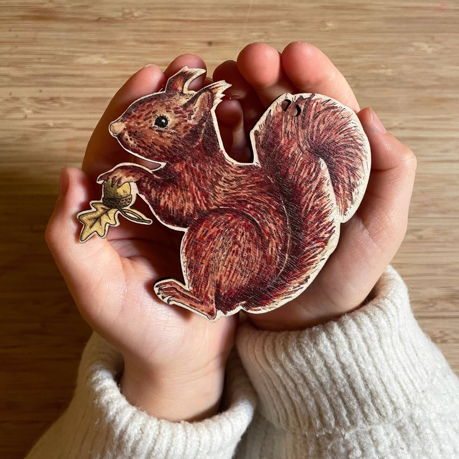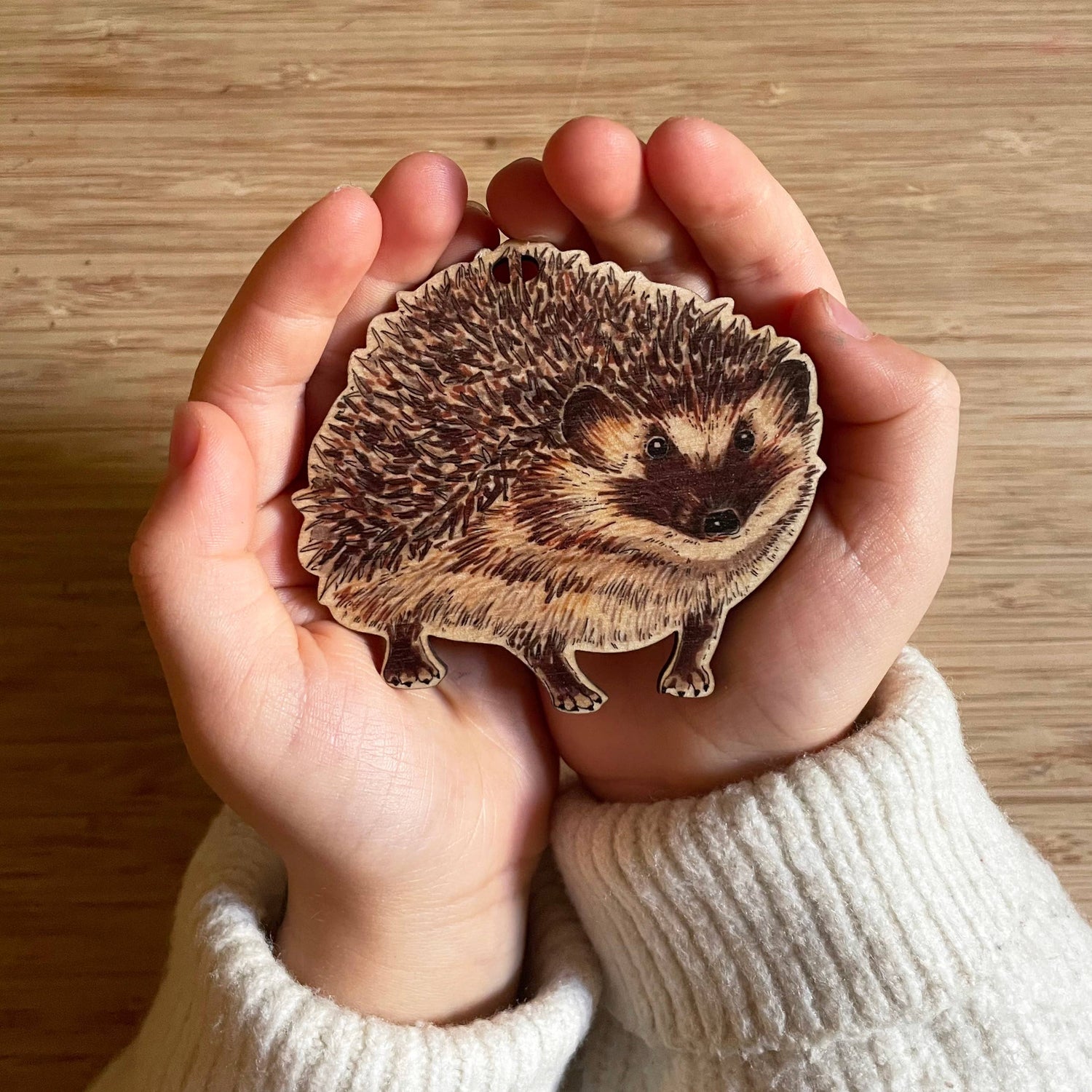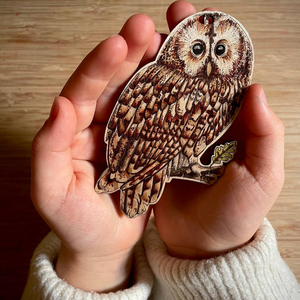 A box set of 5 illustrated woodland favourites (a badger, hedgehog, tawny owl, red squirrel and toadstool) with facts and tips about each on the back. The set includes string to hang them individually and a length of faux leather cord to string and hang them as a beautiful garland. The original illustrations were hand drawn and then printed in the UK on sustainably sourced birch wood, allowing the natural grain of the wood to show through. On the back of each decoration is an added touch with facts and tips about each. They look great on the Christmas tree but also strung as a garland in a children's nursery or playroom. - Box set contains 5 wooden decorations - Includes length of faux leather cord for garland - Includes 5 strings to hang individually - Box dimensions: 10.7cm x 10.7cm x 2.5cm